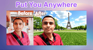 Creative montages (e.g., inserting people into scenarios like Disney or other locations).